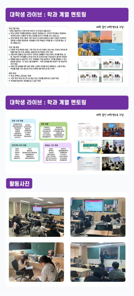 • 견적 기준: 대학생 학과 멘토링 / 1교시x로테이션